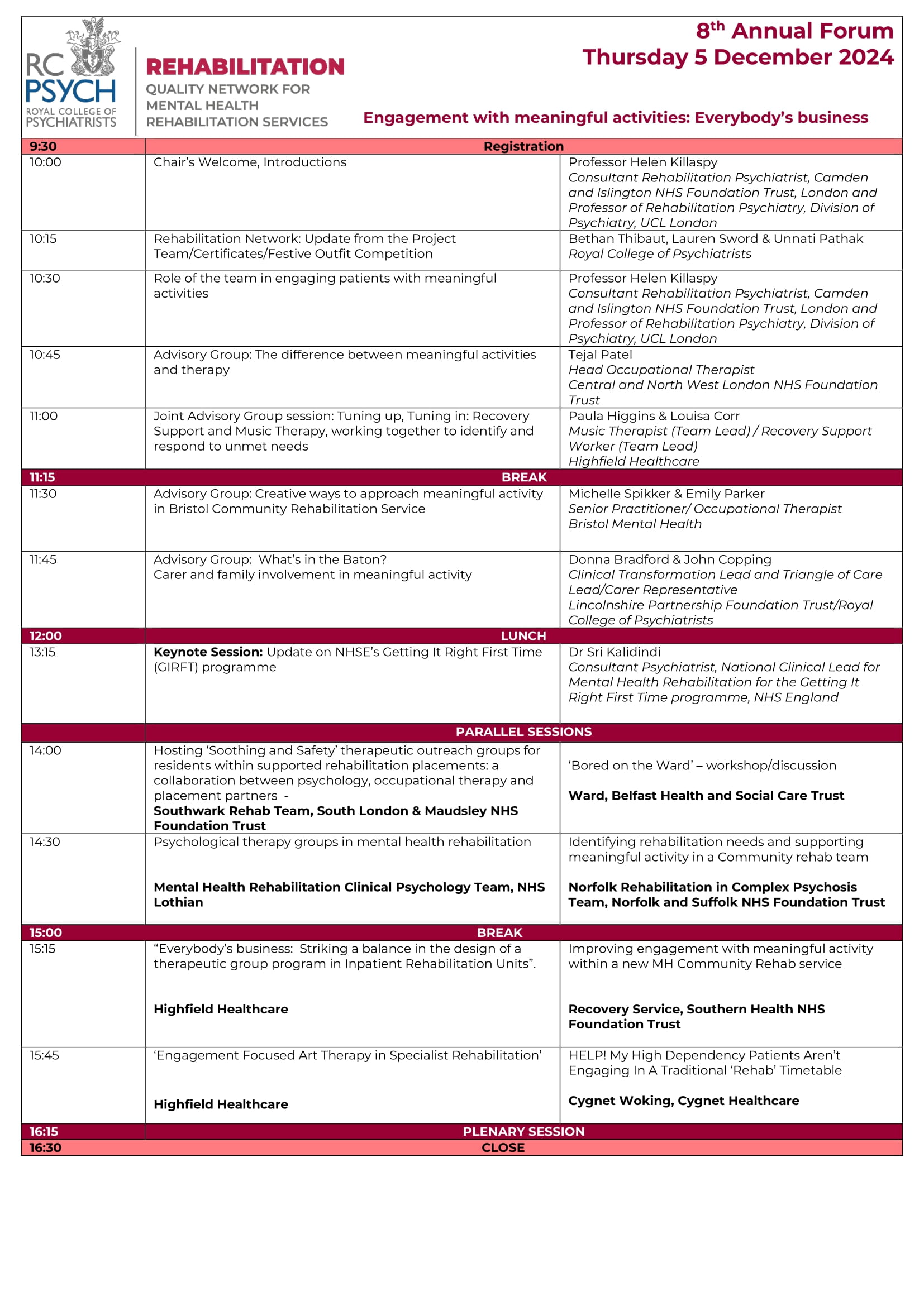 If you would like to attend, please email rehab@rcpsych.ac.uk.