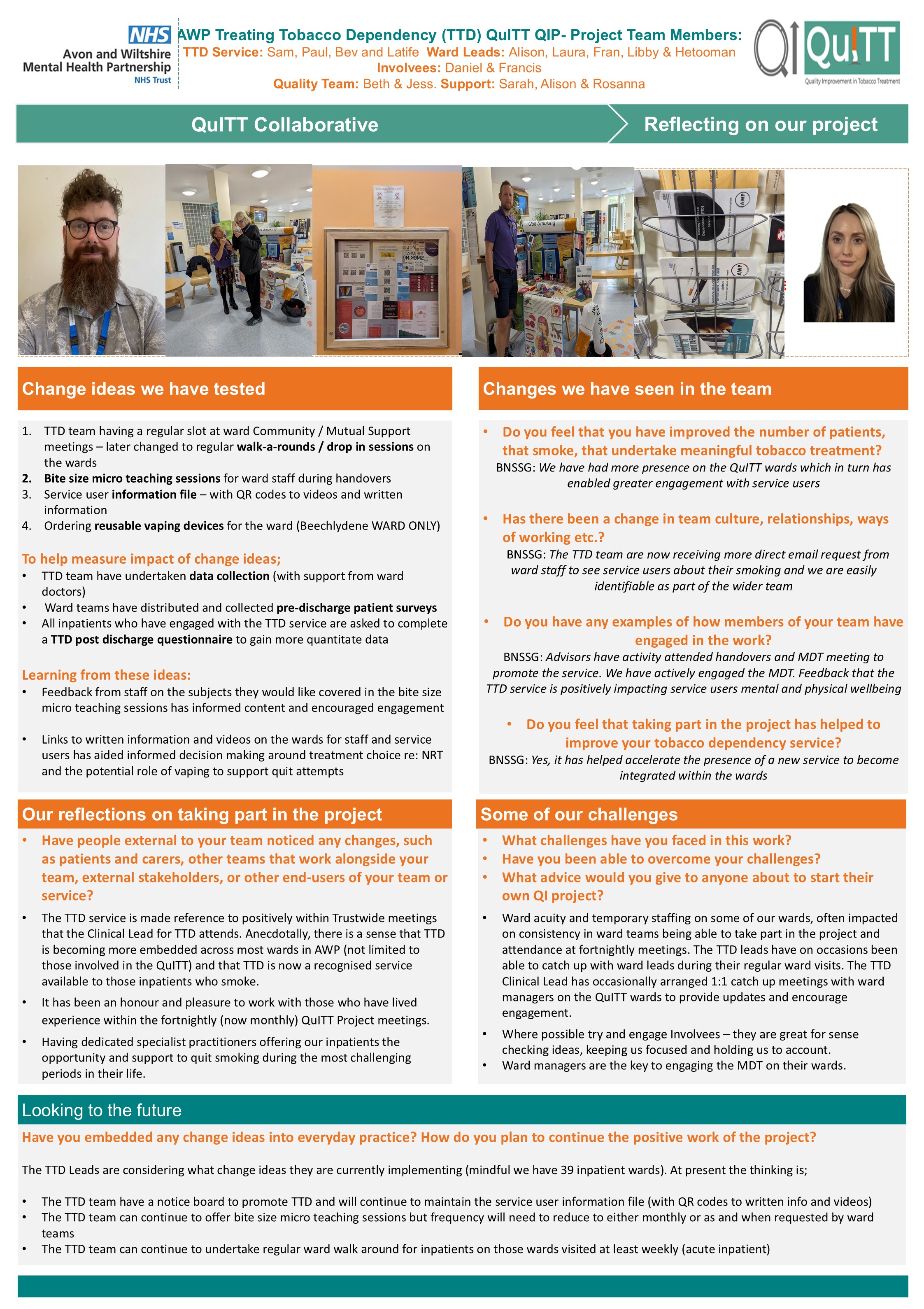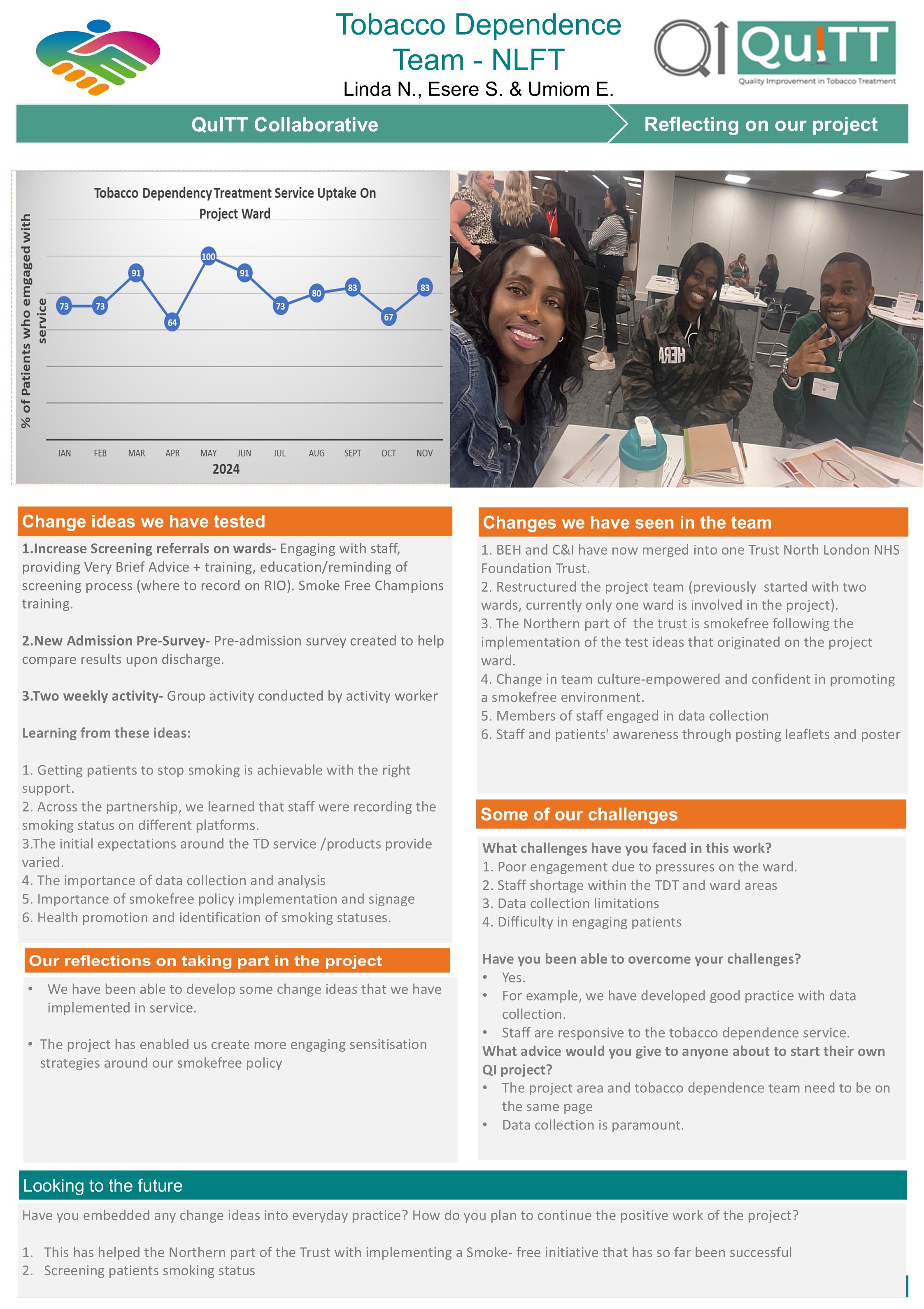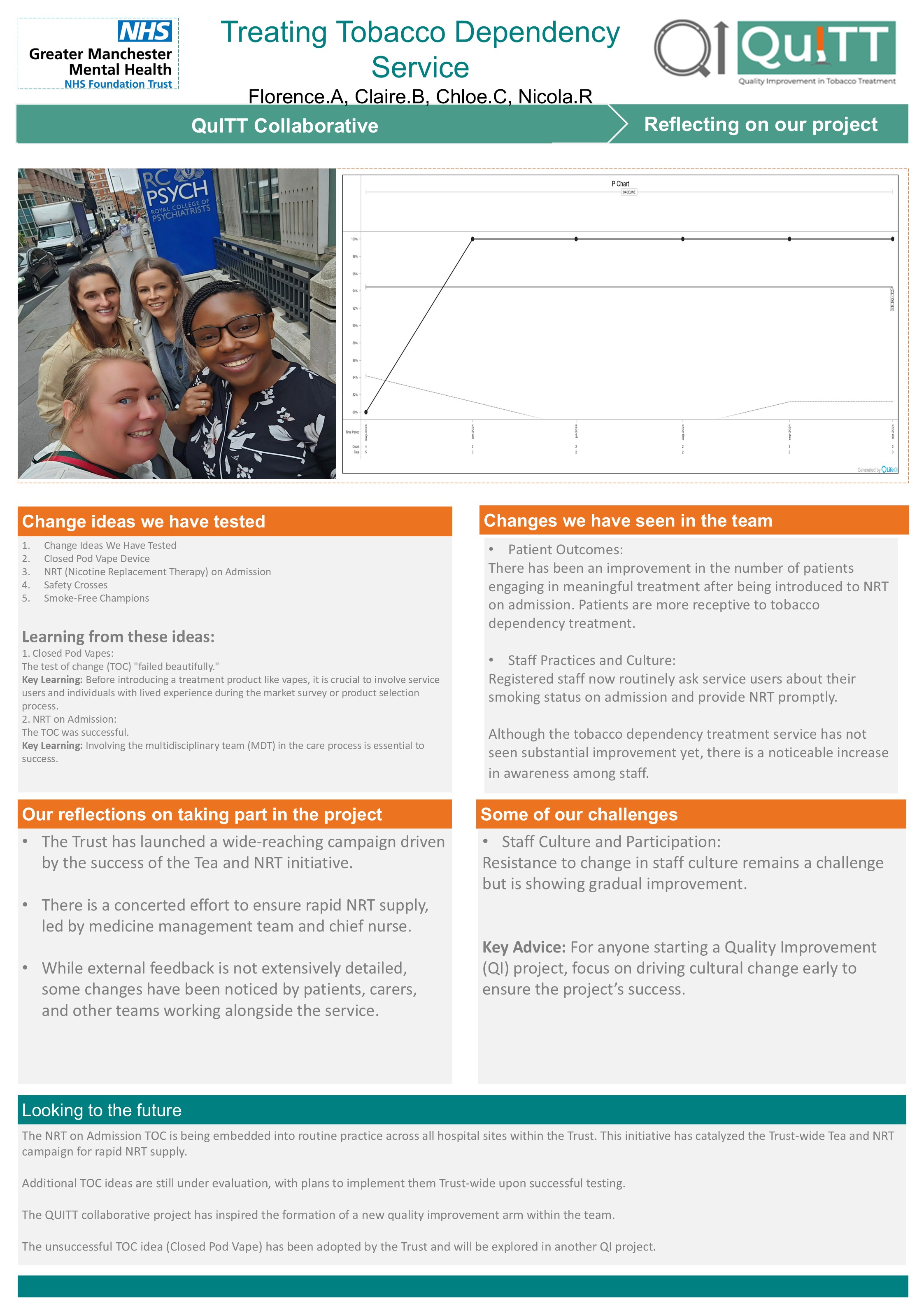 This page showcases the teams QI stories: the change ideas they tested, successes and challenges, and their reflections on taking part.
