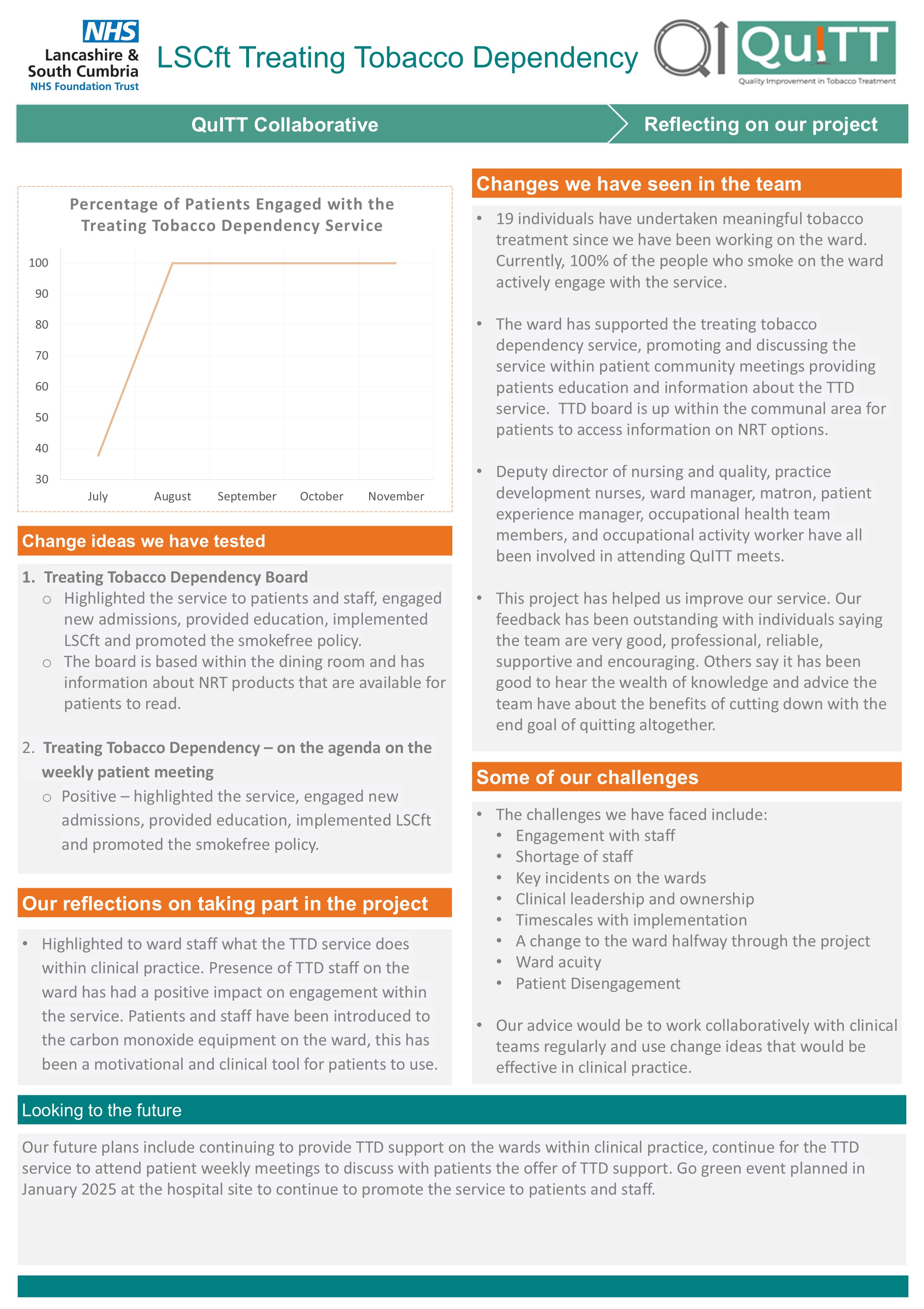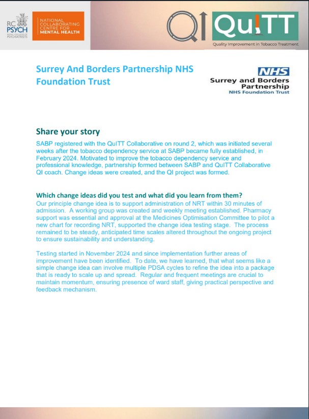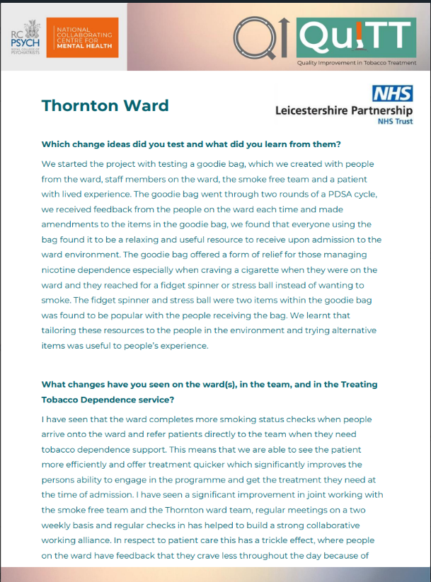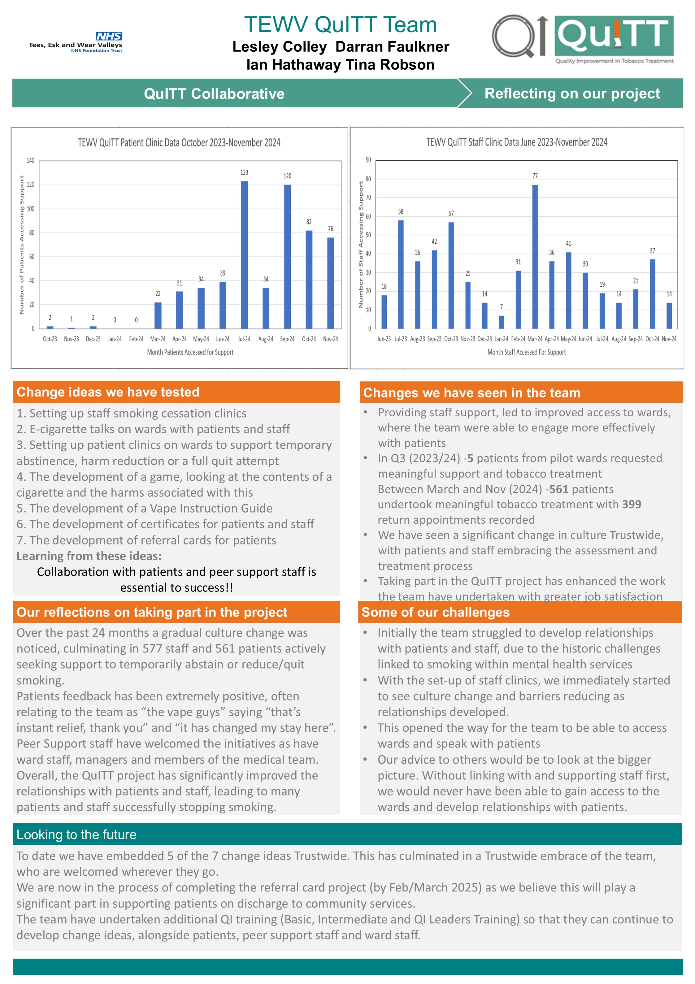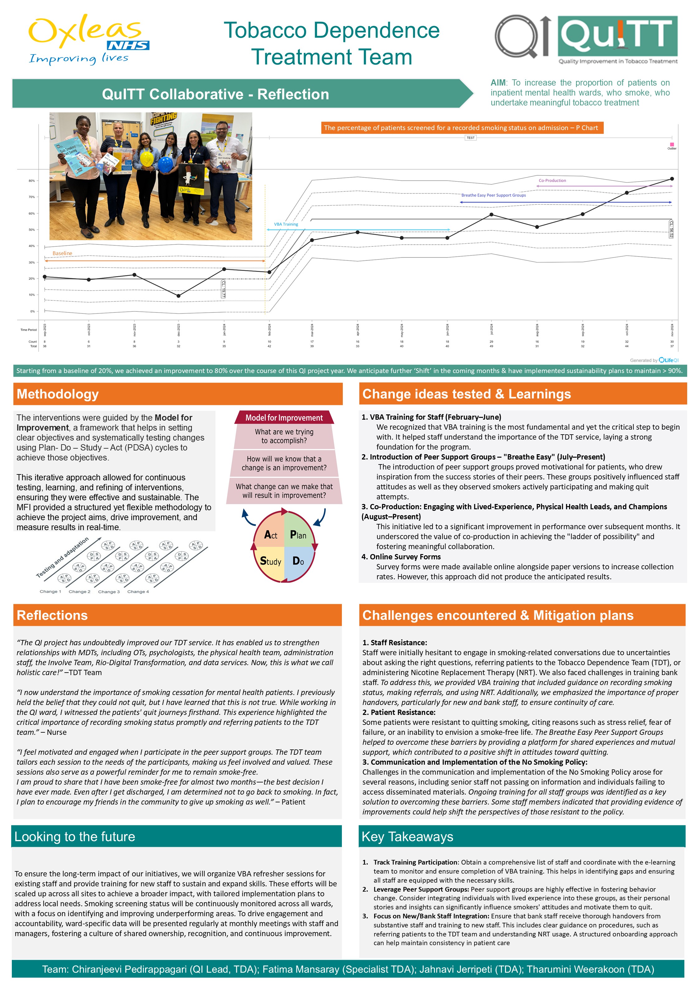 This page showcases the teams QI stories: the change ideas they tested, successes and challenges, and their reflections on taking part.