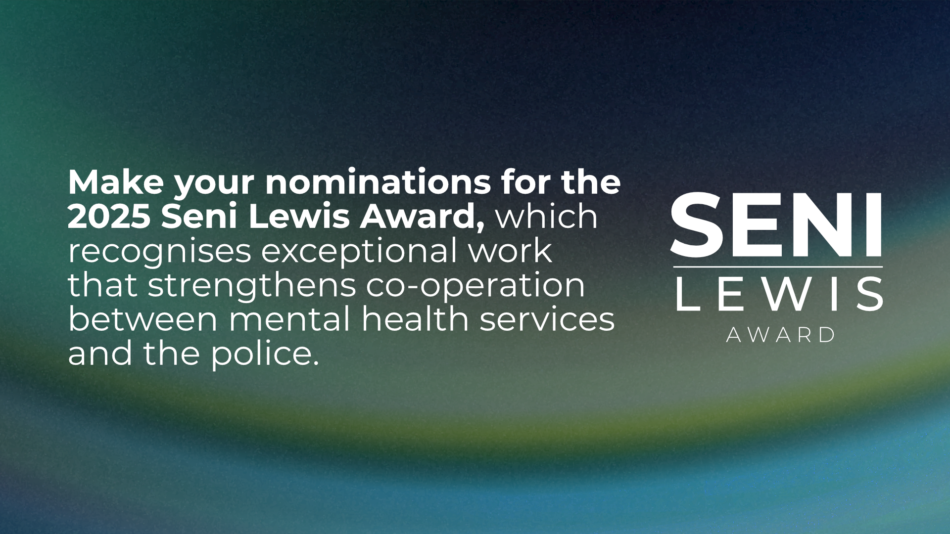 The Seni Lewis Award recognises exceptional work that strengthens co-operation between mental health services and the police, to shape crisis care that reduces harm and builds trust, helping to prevent future tragedies and ensure care is delivered with dignity and respect.