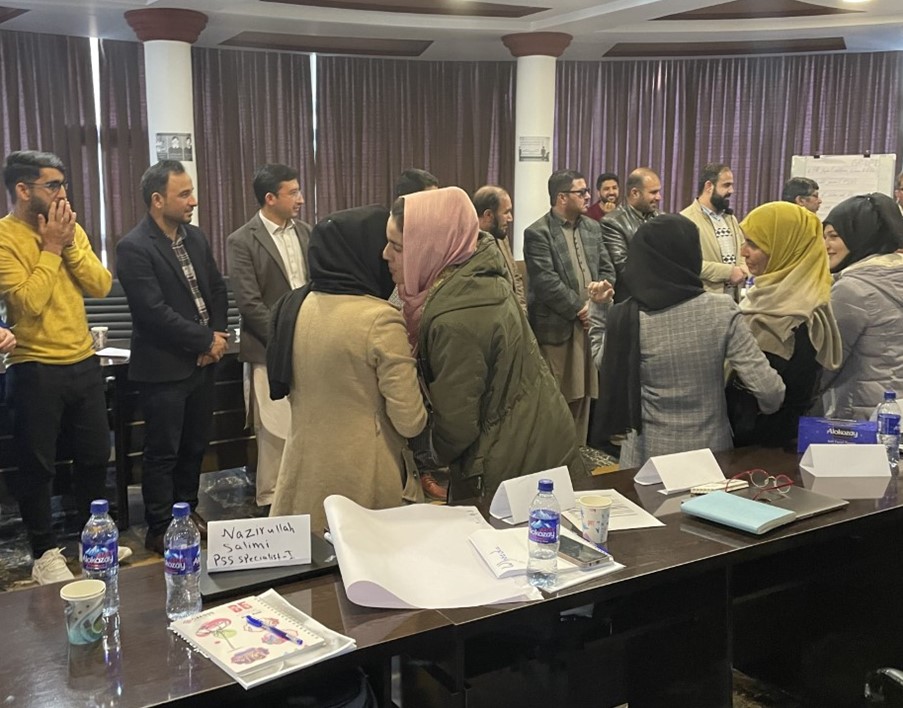 We next held a training on Psychological First Aid. This was a 2-day training session following requests from some of the national MHPSS organisations. This again brought up harrowing stories, some including children. We heard many first-hand accounts of dealing with emergency situations such as the recent earthquake, blasts and the chaos of August 2021 when the Taliban came to Kabul.