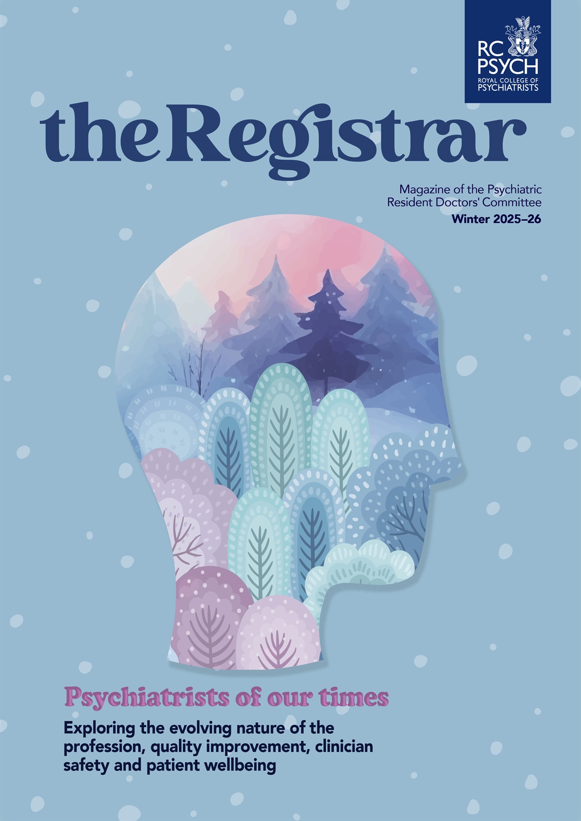 The winter 2025–26 issue of The Registrar explores evolving challenges in modern psychiatry, including integrating psychotherapeutic and biological approaches, the mental health impact of online content on young people, clinician safety and professional boundaries and a quality improvement initiative in trans and gender-diverse healthcare. It also includes an update from the PRDC and a welcome from the publication's new editor Dr Anıl Üstün.